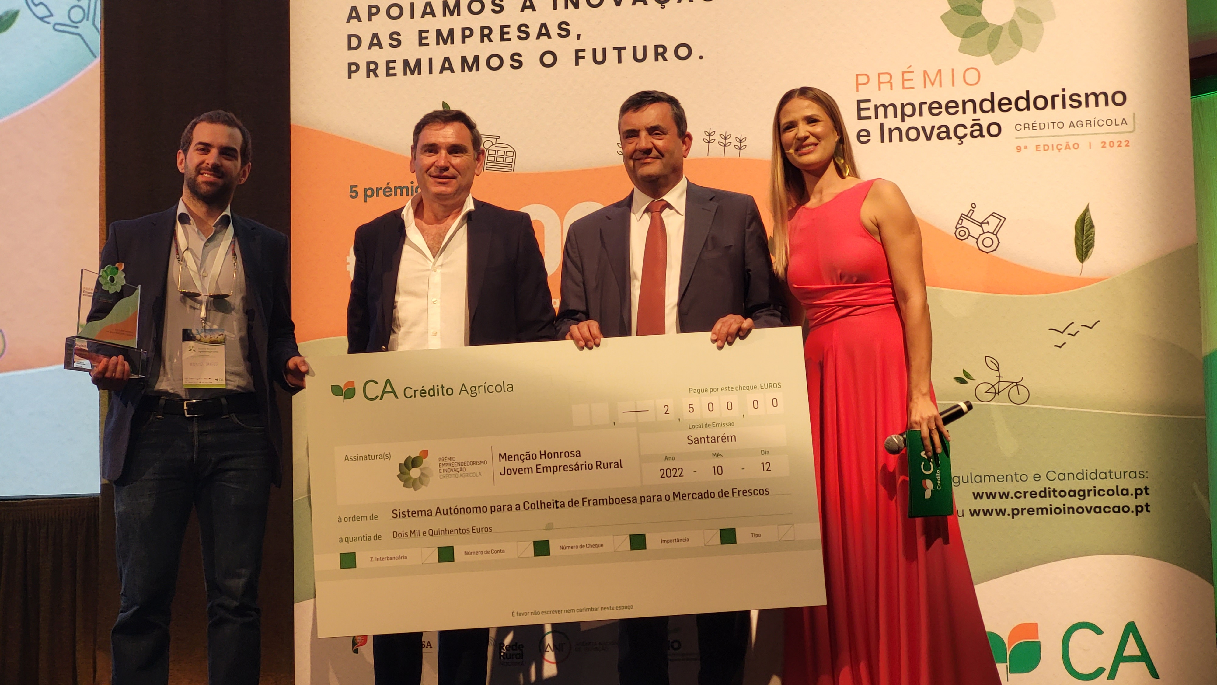 A Menção Honrosa Jovem Empresário Rural foi atribuída ao Sistema Autónomo para a Colheita de Framboesa para o Mercado de Frescos, um sistema baseado em robótica, inteligência artificial e automação para integração de tecnologia autónoma no processo de colheita de framboesa fresca, permitindo ter uma época de colheita mais eficiente.