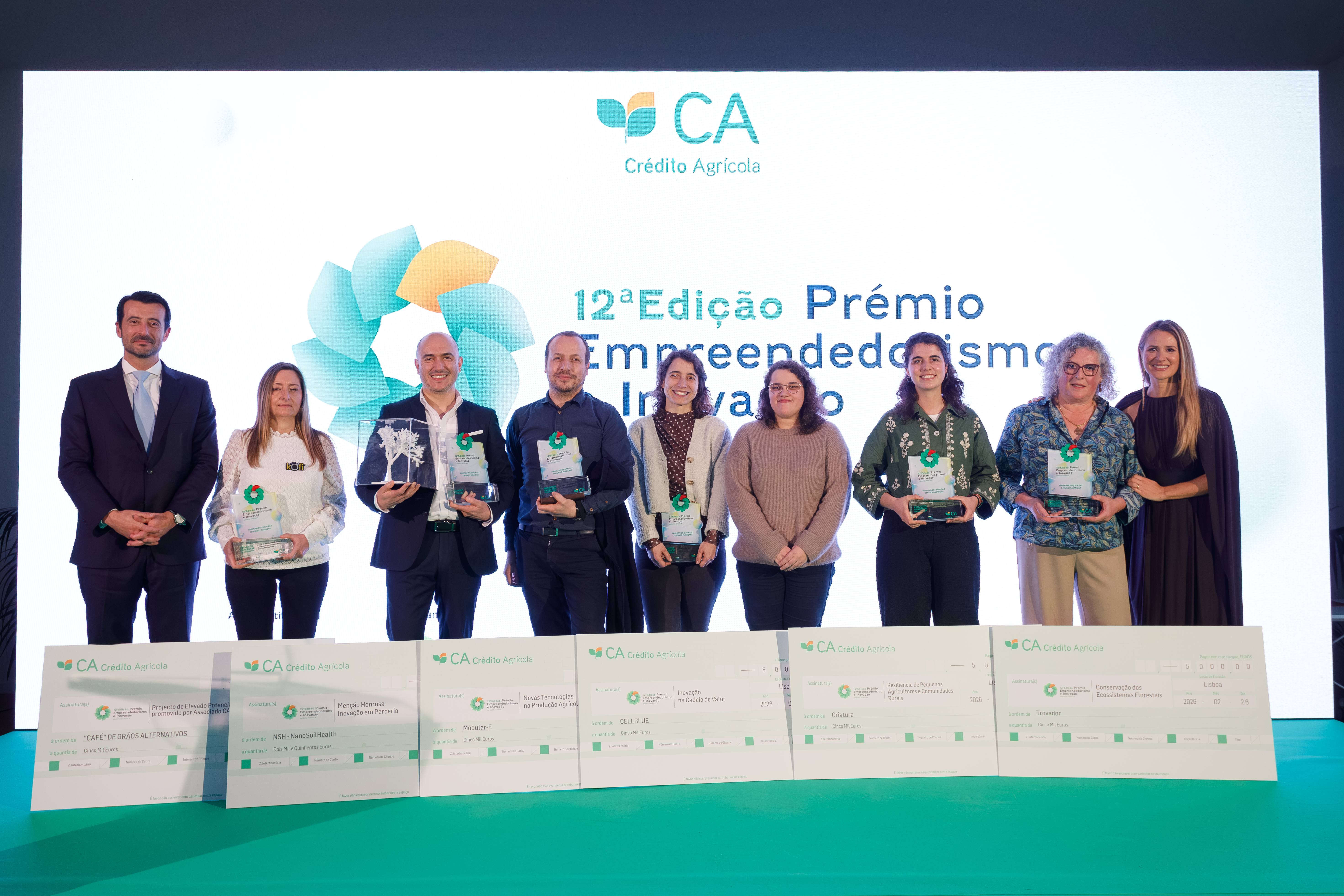 27 de fevereiro de 2026 - O Crédito Agrícola revelou os projetos vencedores da 12.ª edição do Prémio Empreendedorismo e Inovação numa cerimónia que decorreu no Pavilhão de Portugal, em Lisboa, e que contou com a presença de Simão Soares, Presidente da P-BIO – Associação Portuguesa de Bioindústria, e de Sérgio Raposo Frade, Presidente do Grupo Crédito Agrícola.