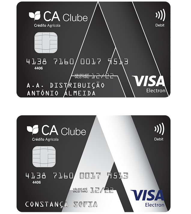 Os cartões Clube A são meios de pagamento emitidos pela rede Visa, sob a forma de cartão de crédito ou débito, consoante a modalidade que pretenda adquirir, válidos em todo o mundo. Além disso, funcionam também como cartões de identificação, identificando-o a si ou à sua Empresa, enquanto Associado CA junto da sua Caixa de Crédito Agrícola.