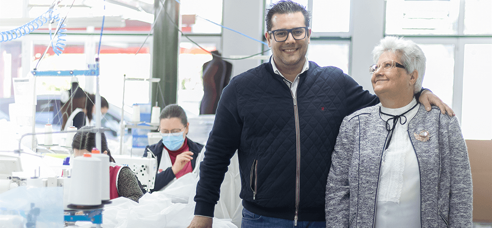Por outras palavras, quando o azimute de Maria de Lurdes se vira para o investimento no seu próprio negócio, inicialmente em sociedade, vários desses contactos vieram valorizar a carteira de Clientes da Belo Solutions*. Anos depois, decide assumir sozinha os destinos da empresa; vai para a Alemanha, junto de um Cliente de referência, adquirir know-how sobre os mais avançados conhecimentos em produção e corte. E dessa oportunidade marcante ficou-lhe a convicção de que, pelo menos neste domínio, a passagem de experiência e de conhecimento dos alemães é completamente transparente, numa lógica de que isso interessa a ambas as partes. Dito e feito. No regresso a casa, há um novo impulso, num negócio que chegou a ter cerca de 50 Colaboradoras. Mas, como diz o fado, quis o destino que uma pedra no caminho viesse travar um crescimento que se antevia sem paragens. Bruno Mesquita, o filho de Maria de Lurdes, licenciado em Engenharia Electrónica e Informática, depois de começar uma carreira na área das tecnologias de informação, decide apostar numa experiência inicial ao lado da mãe, em 2012; essa presença, lado a lado, será, entretanto, condicionada ao ser convidado para gerir uma central de compras; mas, por força de várias circunstâncias, decidiu assumir definitivamente os negócios da família uns anos depois.